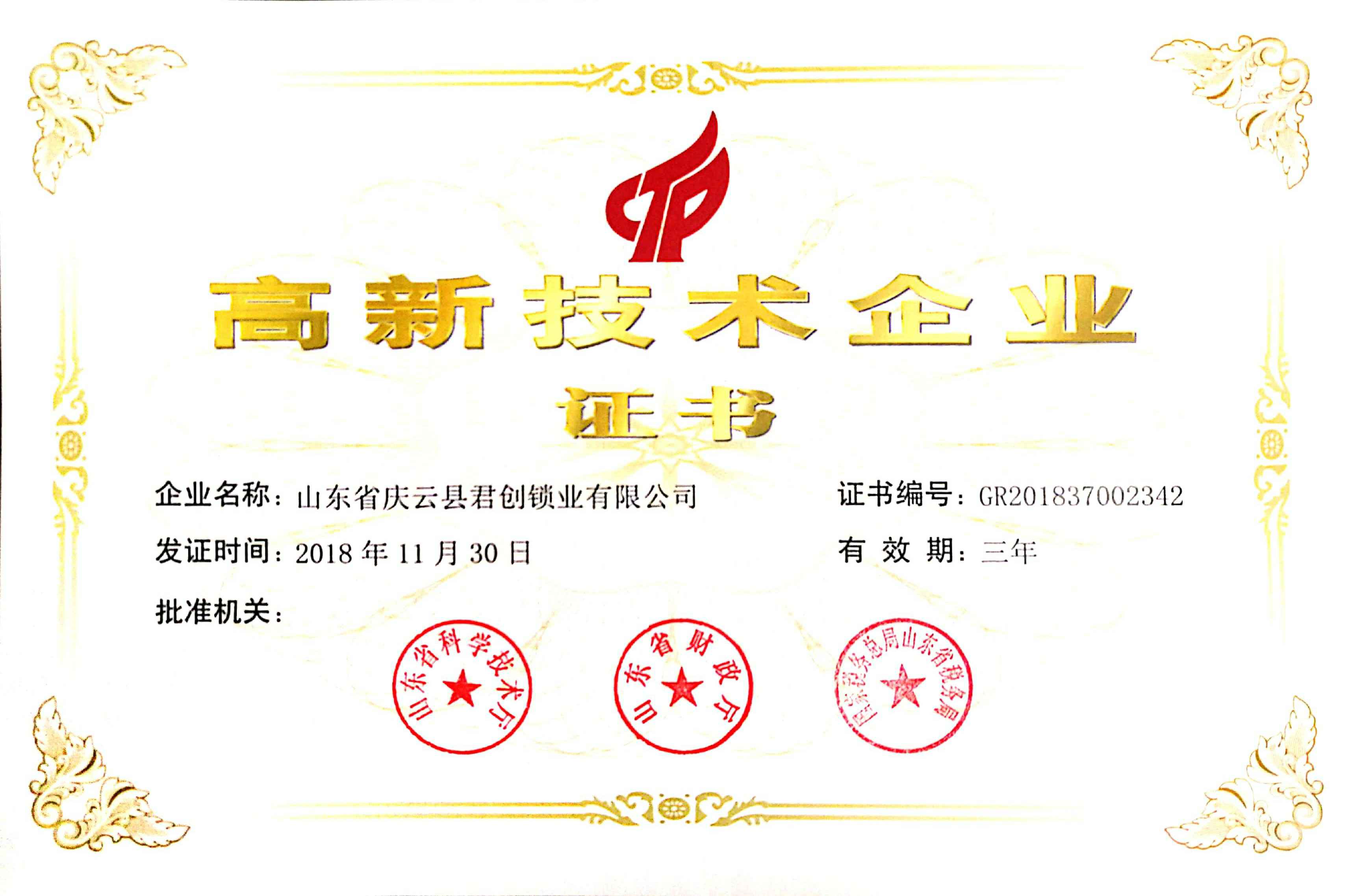近日,千亿网页版·网站官网-千亿(中国)喜迎佳音,获得了“国家高新技术企业证书”。这是千亿网页版·网站官网-千亿(中国)继获得山东省产品质量奖、德州市信用民营企业、等荣誉后获得的一项新的荣誉。